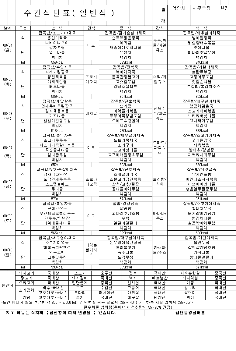2025년 08월 04일 ~ 2025년 08월 10일 식단표 페이지 정보 관리자2 352회 등록일2025.08.07 관련링크 본문 8월 1주 식단표 이전글2025년 08월 11일 ~ 2025년 08월 17일 식단표 다음글2025년 07월 28일 ~ 2025년 08월 03일 식단표 목록